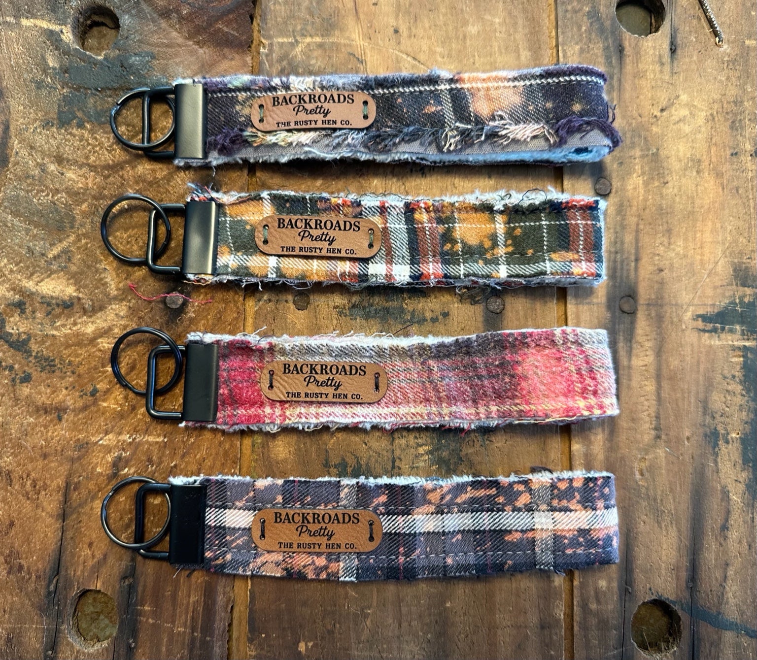 Backroads Pretty™ Distressed Flannel Wristlet Keychain – Fall + Winter Edition (Dark & Earthy Tones)
